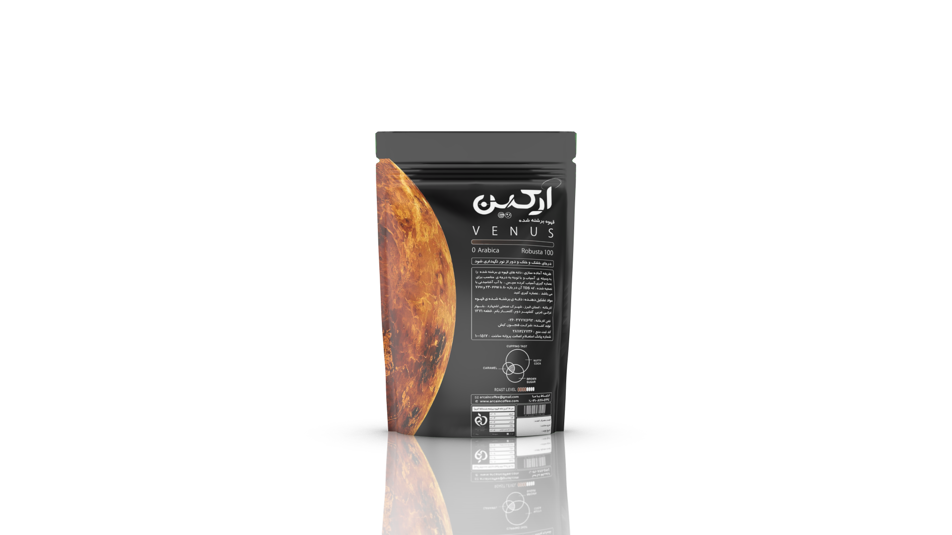 قهوه Venus با ترکیب ۱۰۰٪ روبوستا، بادی قدرتمند، کرمای غلیظ و عطری سنگین از کاکائو، آجیل و کارامل ارائه می‌دهد.